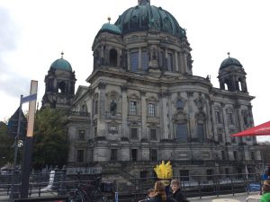 The complicity of the German Protestant establishment with the Nazi regime is not the only thing that Berlin offers for reflection in the realm of church and resistance. Two others come to mind… one is the reality that, even after the horror of World War II and even amidst the strong and active anti-religious agenda of the communist East German regime, the church still survives (albeit in much smaller numbers of adherents). I was impressed to see the Berliner Dom, the Protestant “cathedral” in Berlin, and in particular to learn that it stood in ruins until the early 1970s. It was while still under the anti-religion East German regime, though, that this stunning edifice was rebuilt. The money for it came from the West, of course, but nevertheless it happened. And there are other examples, too. As an old hymn lyric goes, “Built on the rock, the church does stand, even when steeples are falling.” Especially given the culture of church in America, and the history of the post-war “glory days” of the 1950s and early 60s, we easily associate “success” with numbers; but I’d count the continued persistence of the church in eastern Germany as a different form of “success”.